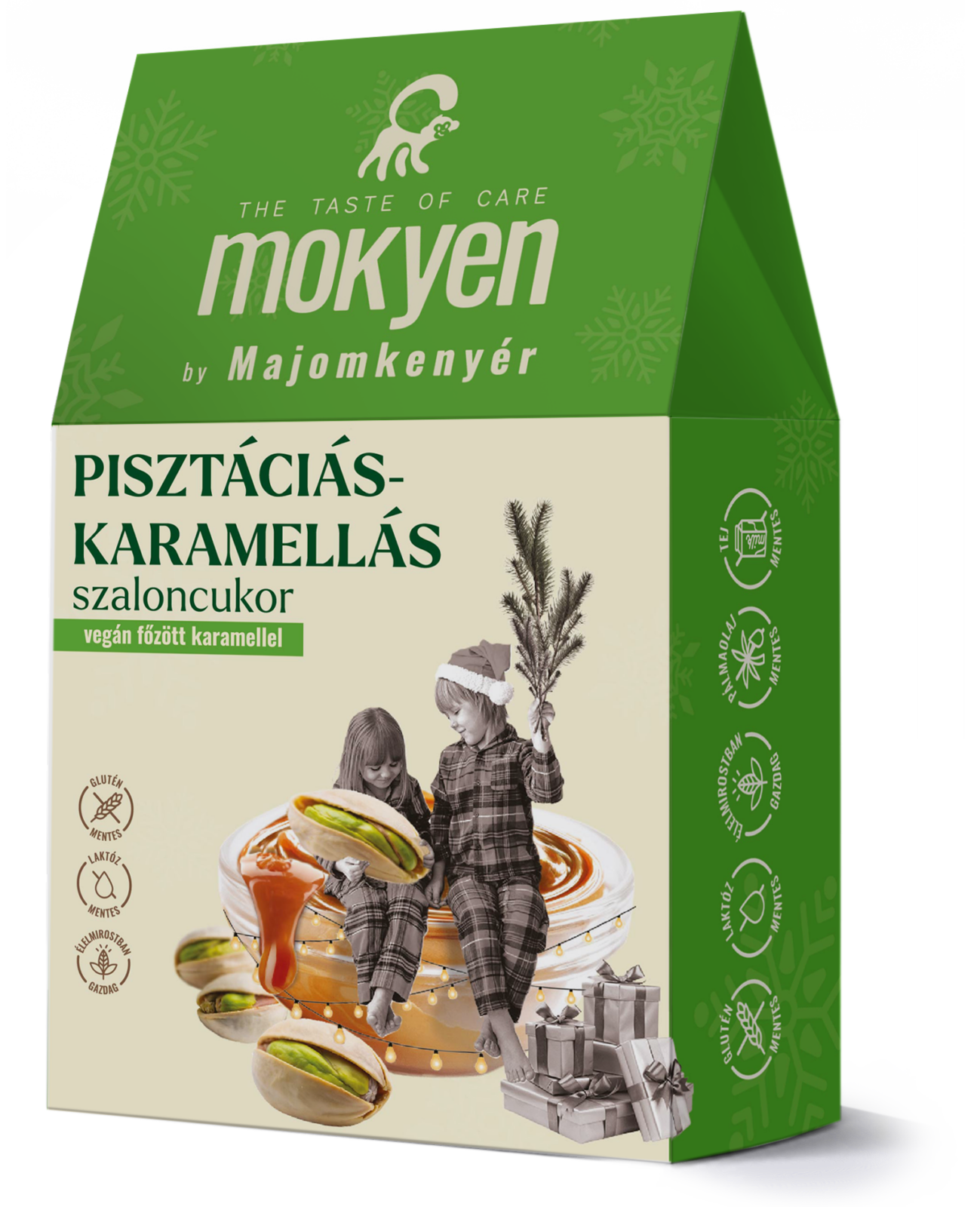 Összetevők: karamellizált kókuszvirág cukor (33%), kókuszkrém /kókuszkrém, stabilizátorok (xantán gumi, guargumi, karragén)/, pisztácia paszta (24%) (PISZTÁCIA, színezékek: klorofillok, kurkumin), étcsokoládé (20%) (cukor, kakaó massza, kakaóvaj), rizsszirup /rizsliszt, víz/, kókuszliszt, kókuszolaj.